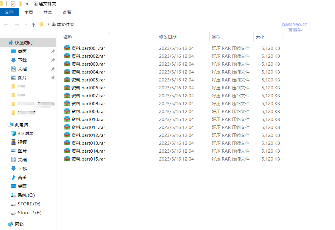 5、最后点击“确定”,WinRAR 就会自动开始压缩,并生成多个连续编号的分卷压缩文件。