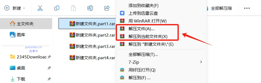 将所有分卷放在同一文件夹,右键点击第一个分卷(比如part1.rar),选择“解压文件...”或 “解压到当前文件夹”,WinRAR 会自动识别并连续解压所有分卷。