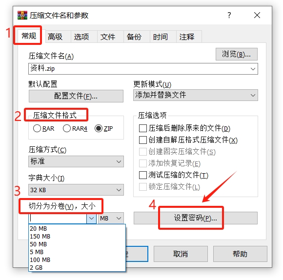 我们先来了解一下什么是“分卷压缩”,分卷压缩就是把一个大压缩包拆成若干个小包,这样可以方便储存、拷贝或上传。