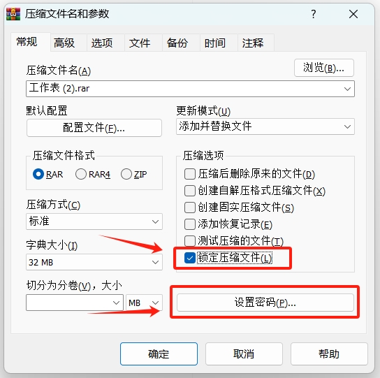 二、如何使用 WinRAR 锁定压缩文件