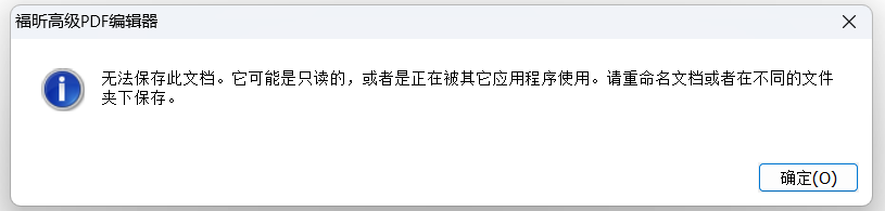 PDF编辑后,在保存文件时会弹出对话框,提示文件为“只读”。