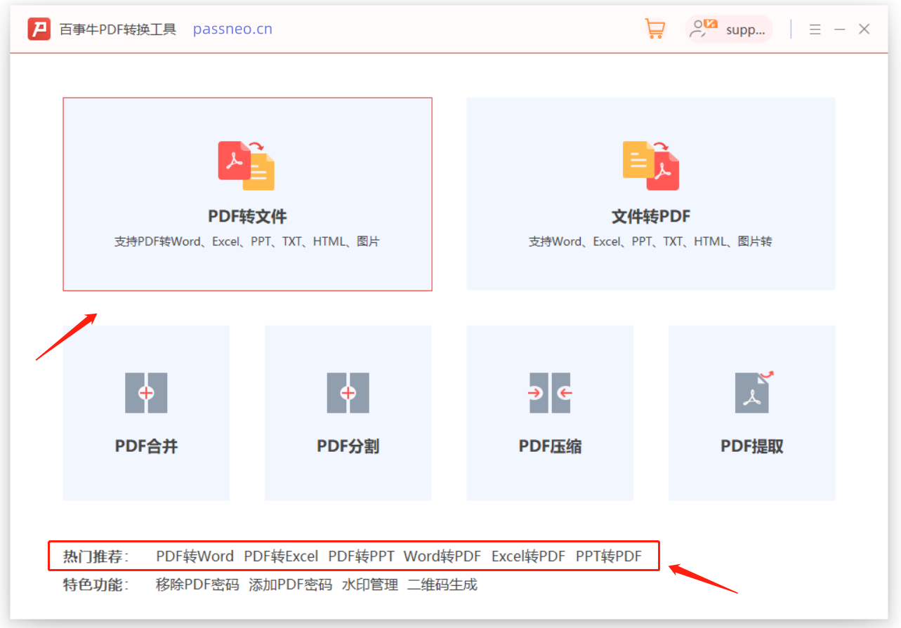 以小编使用的PDF工具为例,工具里的【PDF转文件】模块,可以将PDF转换成多种格式的文件,比如Word、PPT等。即使PDF被设置了限制保护,也可以直接转换,无需使用密码。同时,还支持批量转换。
