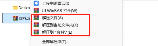 1、右键 ZIP 文件,选择WinRaR图标的解压选项。与7-ZIP的选项一样,你可以根据需要选择【解压文件...】、【解压到当前文件夹】,或者【解压到“文件名\”】。