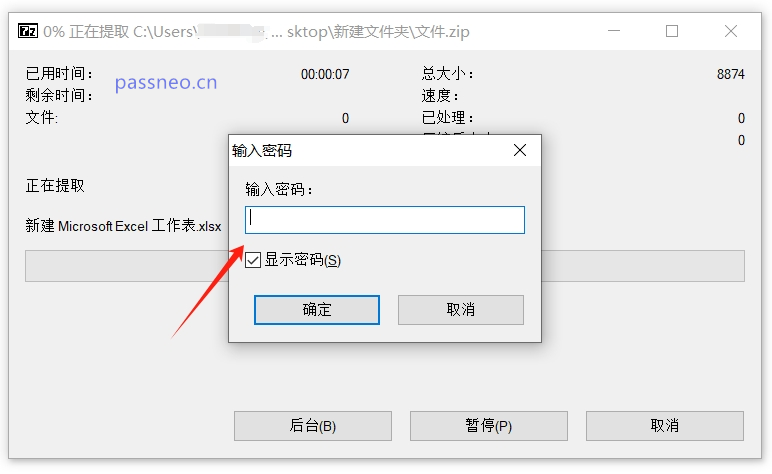 当 ZIP 文件被加密后,解压过程中会弹出“输入密码” 的提示,必须输入正确密码,才能完成解压。