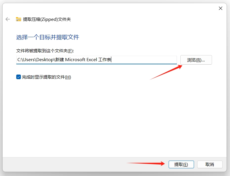 2、弹出对话框后,点击【浏览】可以设置解压后文件的保存路径,如果不设置则默认解压到同名文件夹,最后点击【提取】即可。