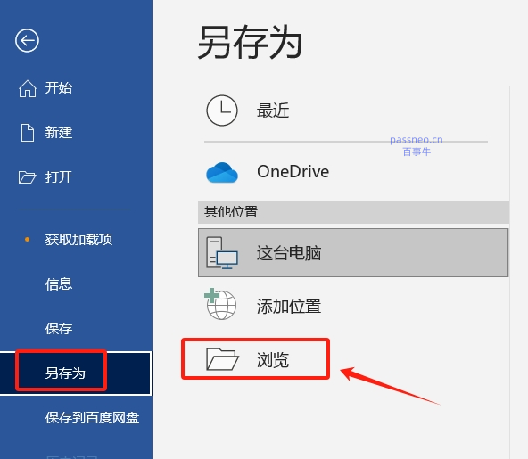 1、打开文档后,点击【文件】,再点击【另存为】→【浏览】。