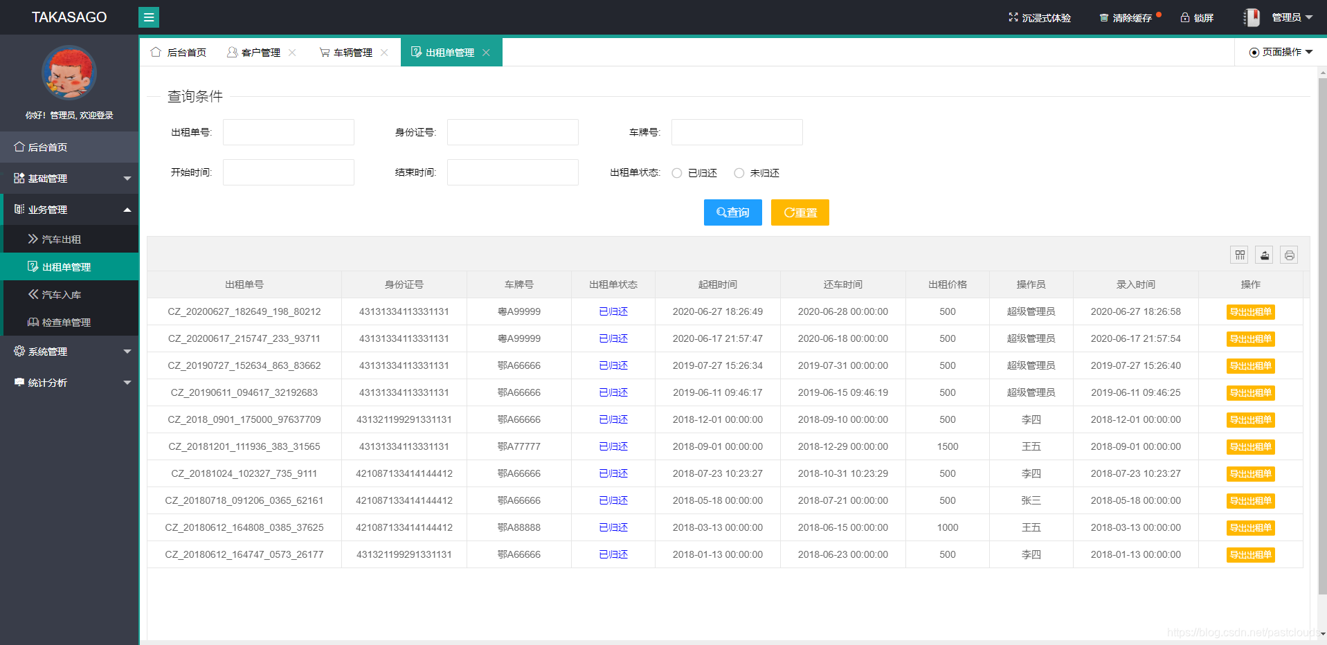 功能包括: 车辆管理,出租管理,汽车入库,汽车出租,汽车归还, 客户管理,出租单管理,统计分析等等功能,功能多多一 起来看看吧。