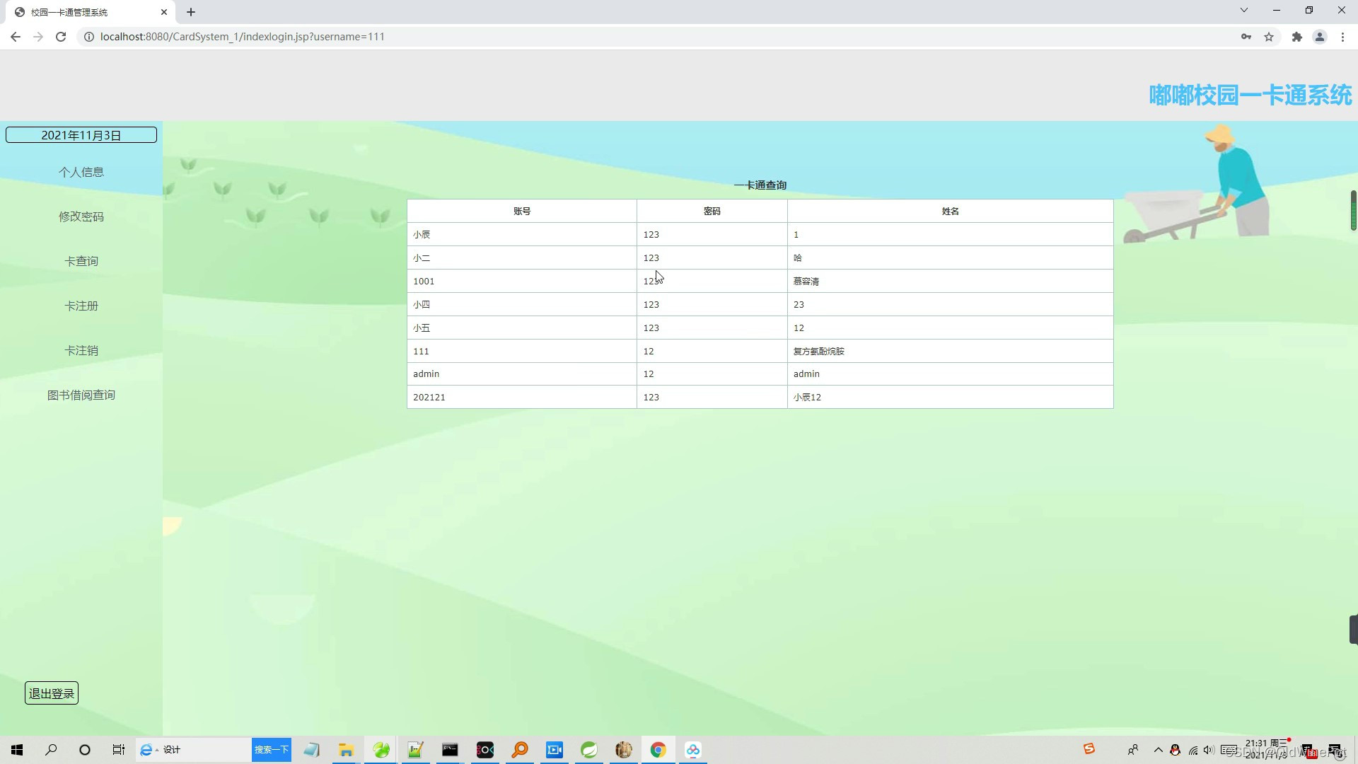 功能:卡管理,卡消费,卡充值,图书借阅,消费,记录,注销等等功能。