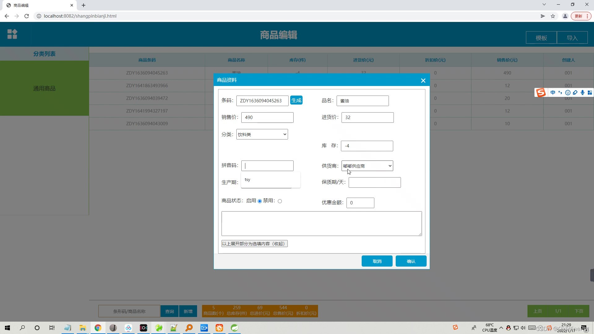 * 修改商品信息
