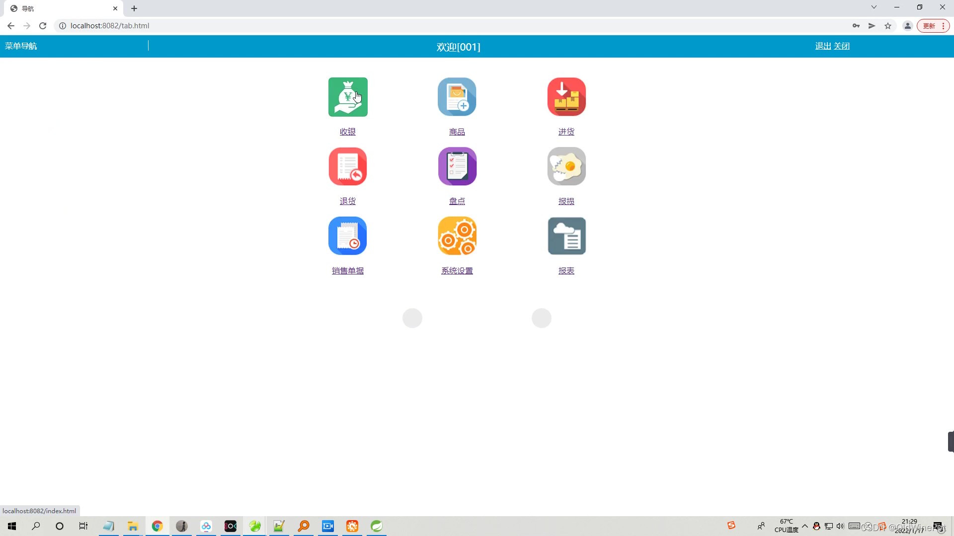 本系统主要实现的功能有:收银、报表、用户管理、商品管理、销售管理、进货退货管理、仓库管 理等等功能。