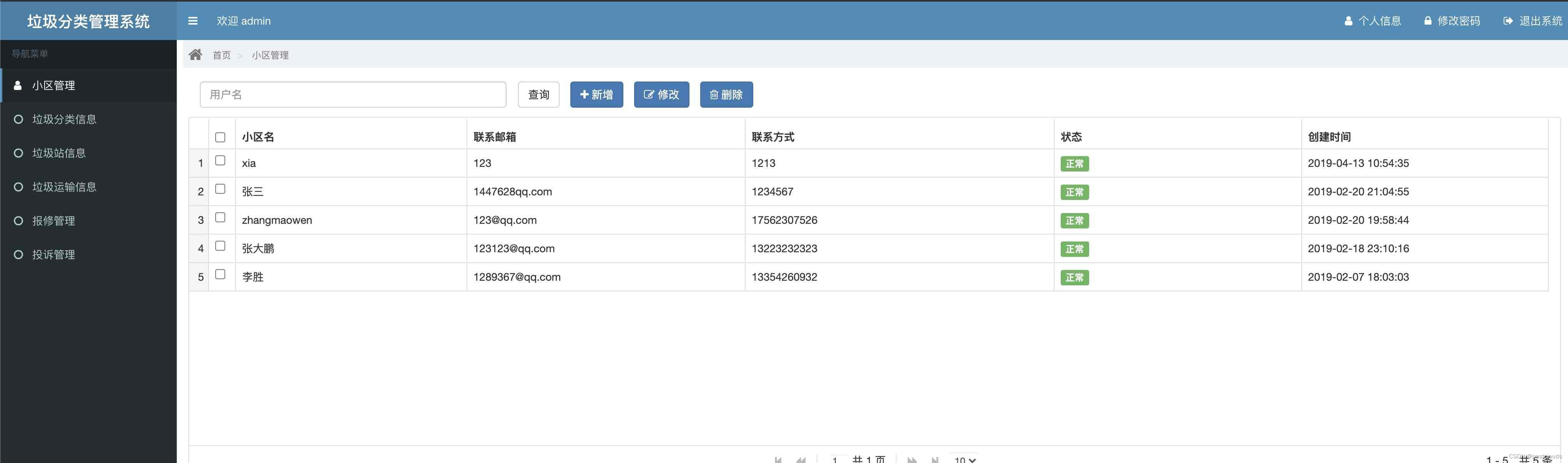 垃圾分类管理系统采用的是B/S的结构。系统管理员具有小区管理、垃圾分类信息、垃圾站信息、垃圾运输信息、垃圾信息、报修管理,投诉管理等功能。本系统界面简单直观,易于操作和使用,交互性强。