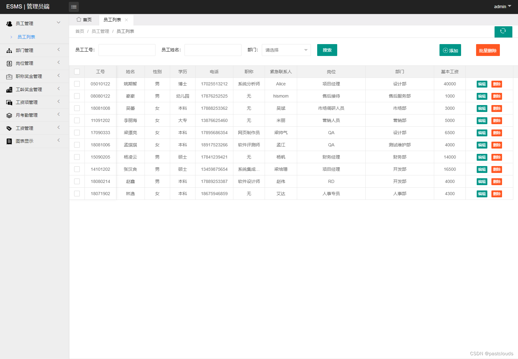 岗位管理,部门管理,工龄奖金管理,员工管理,考勤管理,工资查询,职称管理,统计图表,工资项管理,管理员登录等功能。
