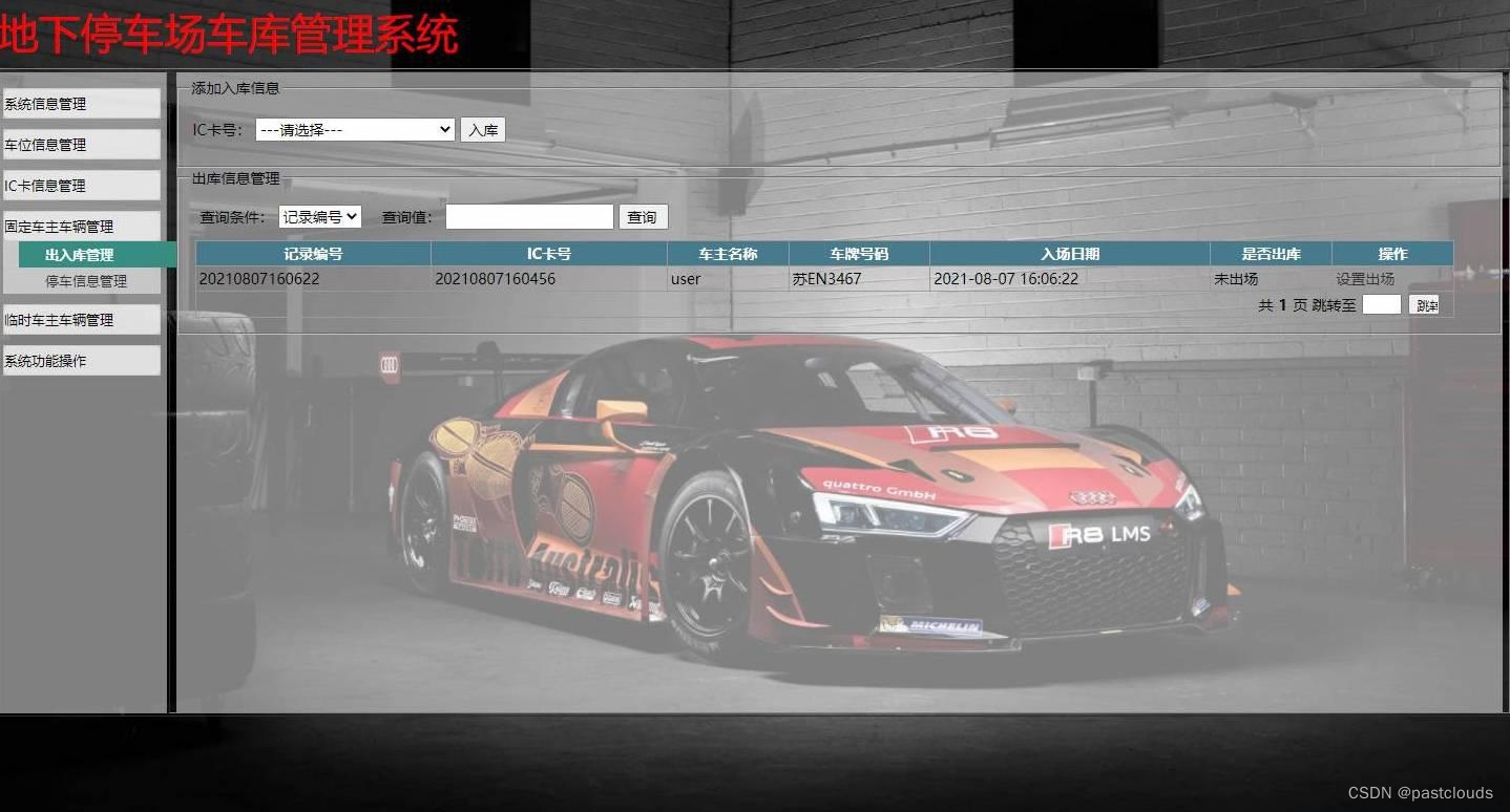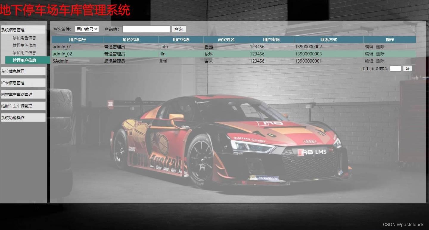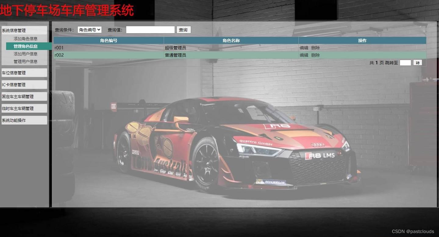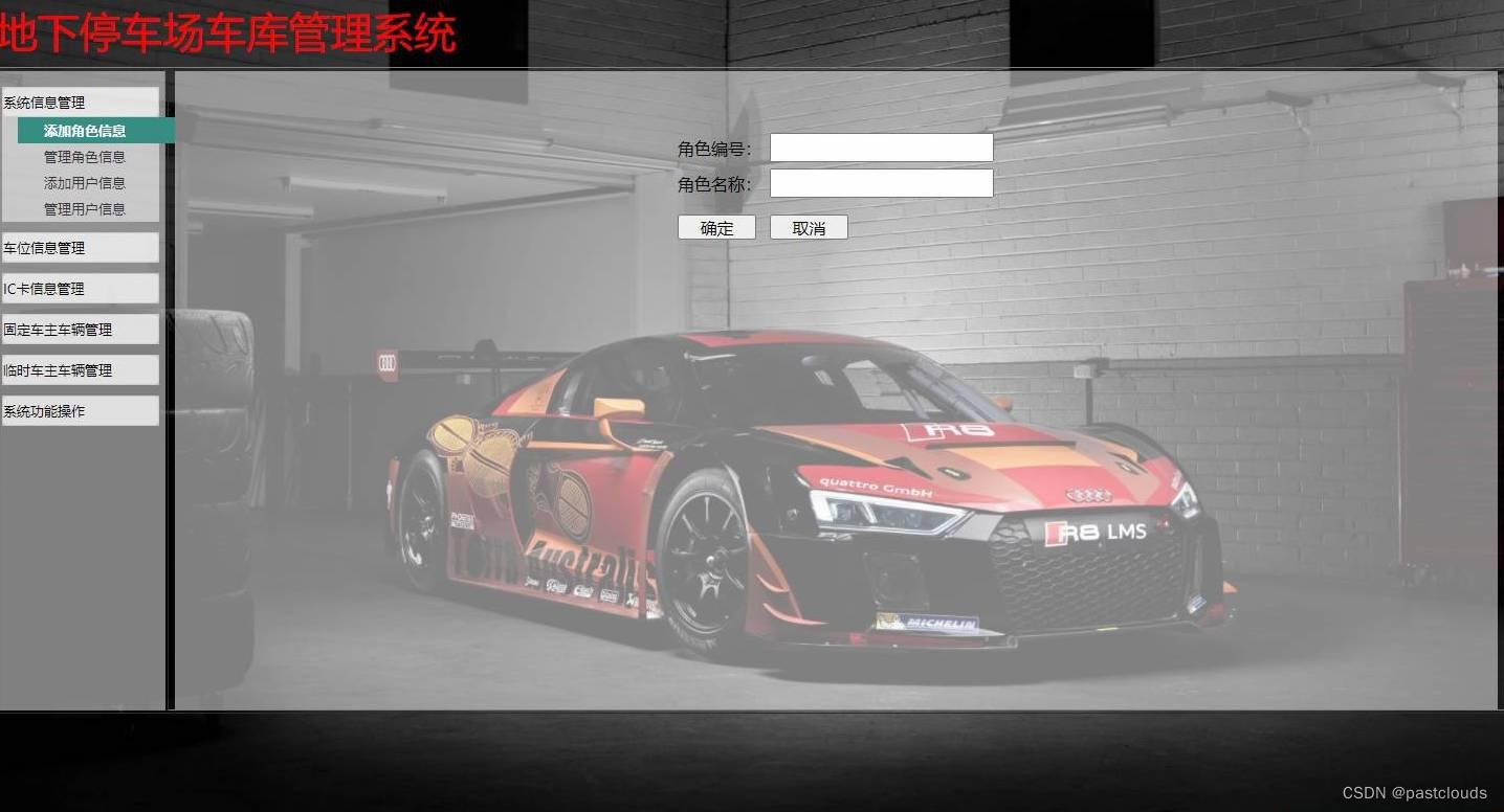 管理员登录,添加角色信息,管理角色信息,添加用户信息,管理用户信息,车位信息管理,IC卡信息管理,出入库管理,停车信息管理,临时车辆入库管理,车辆出库管理,修改密码等功能。