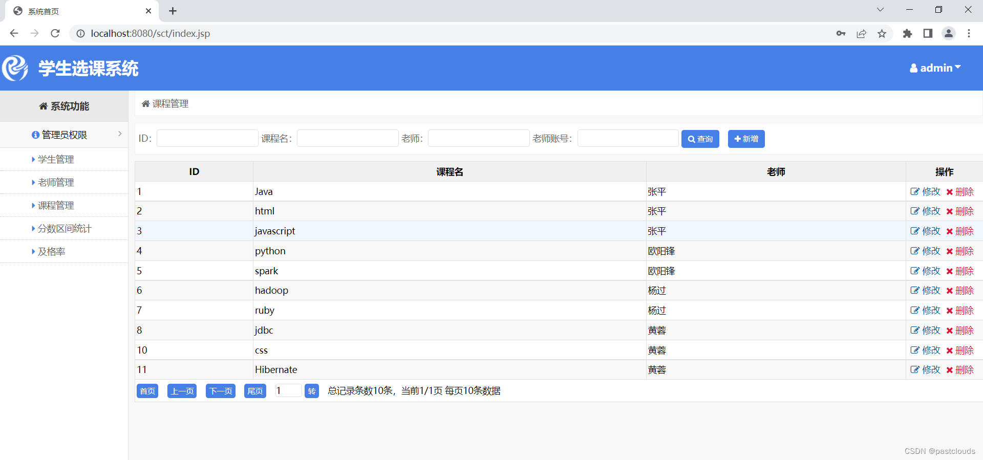 本文介绍了开发一个学生、老师和管理员角色的选课系统,涵盖登录、课程管理、成绩录入、权限控制等功能。通过学习,你可以掌握项目流程、权限控制、前后端整合及Echarts图表技术。系统采用Java Servlet、JSP、MySQL和Tomcat等技术栈,提供了详细的使用说明和源码获取途径。