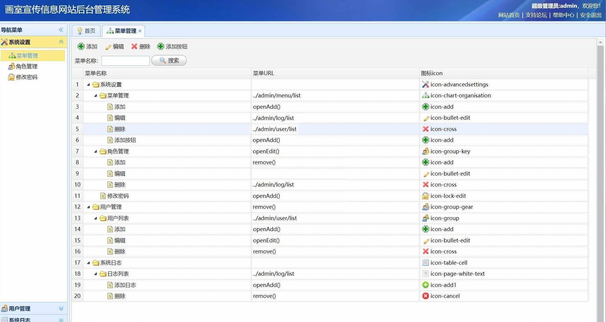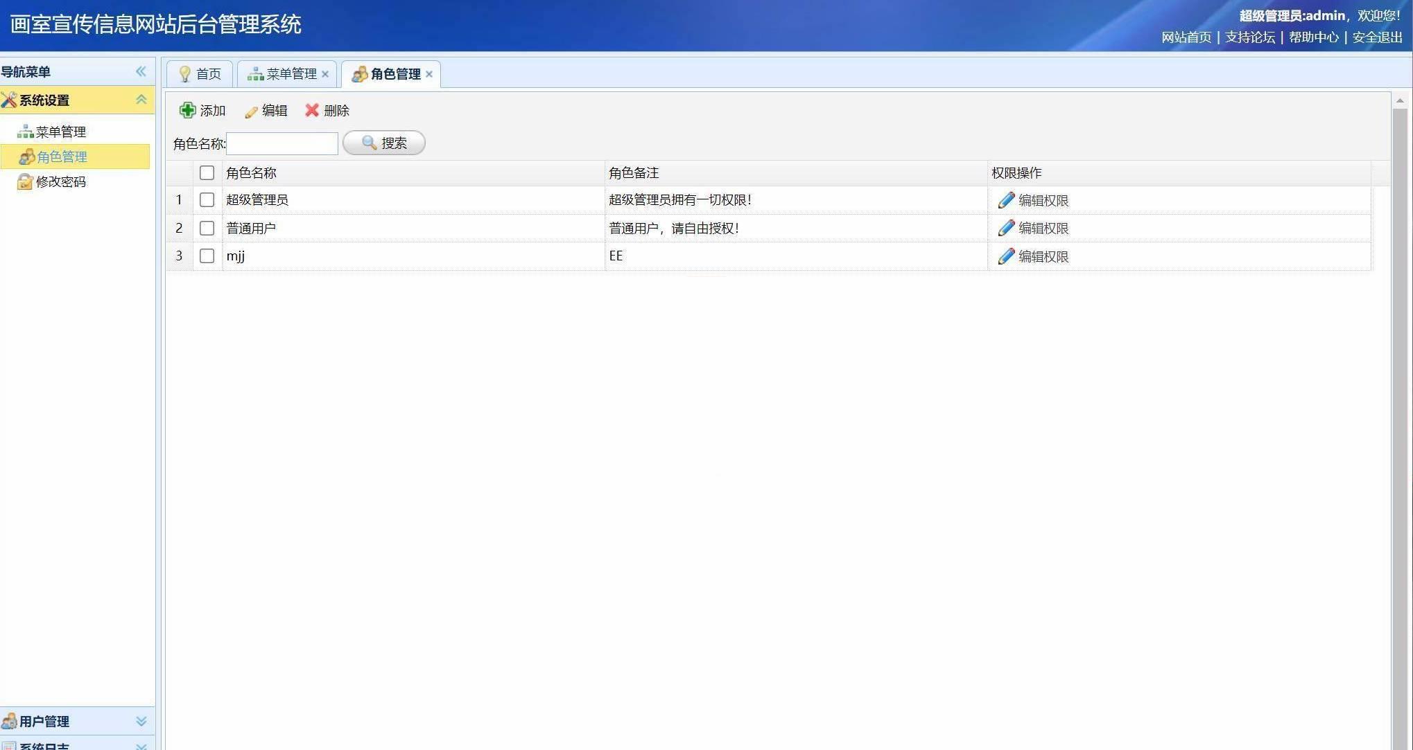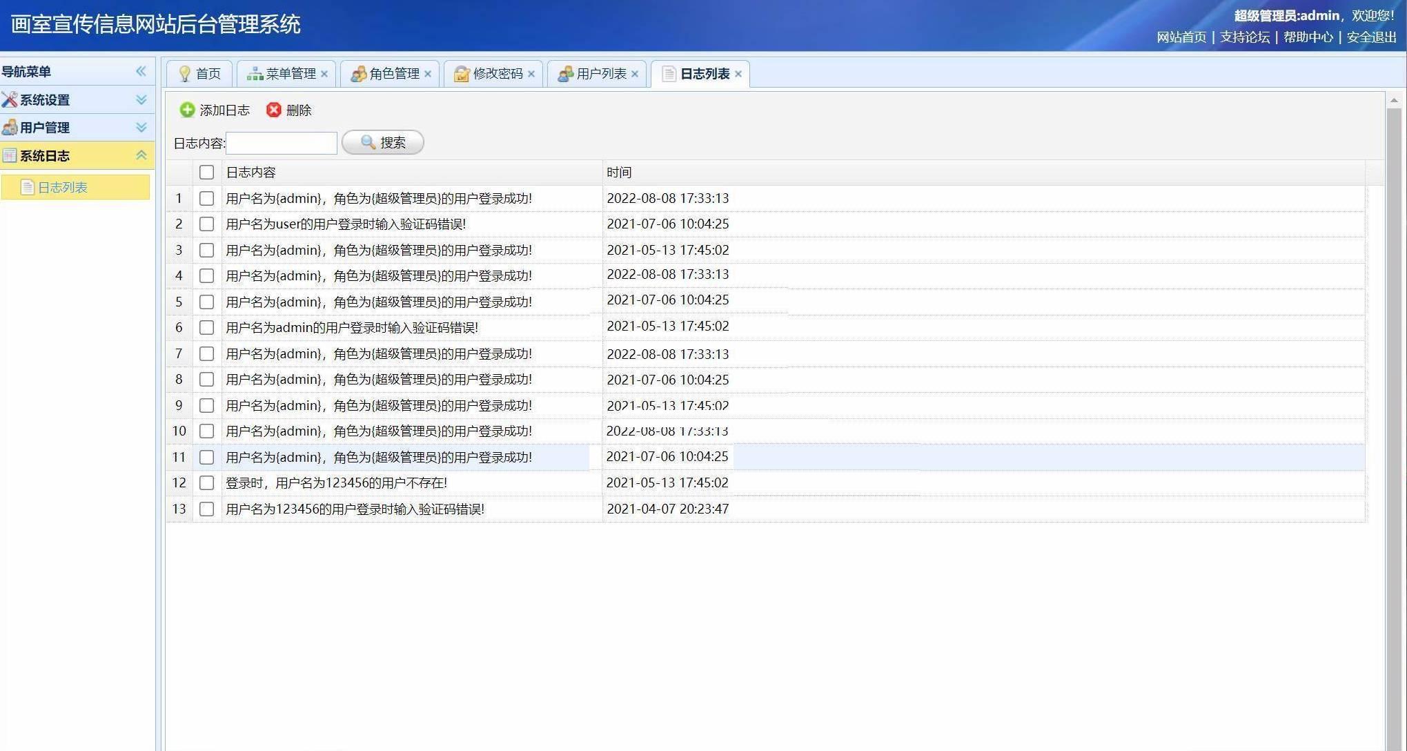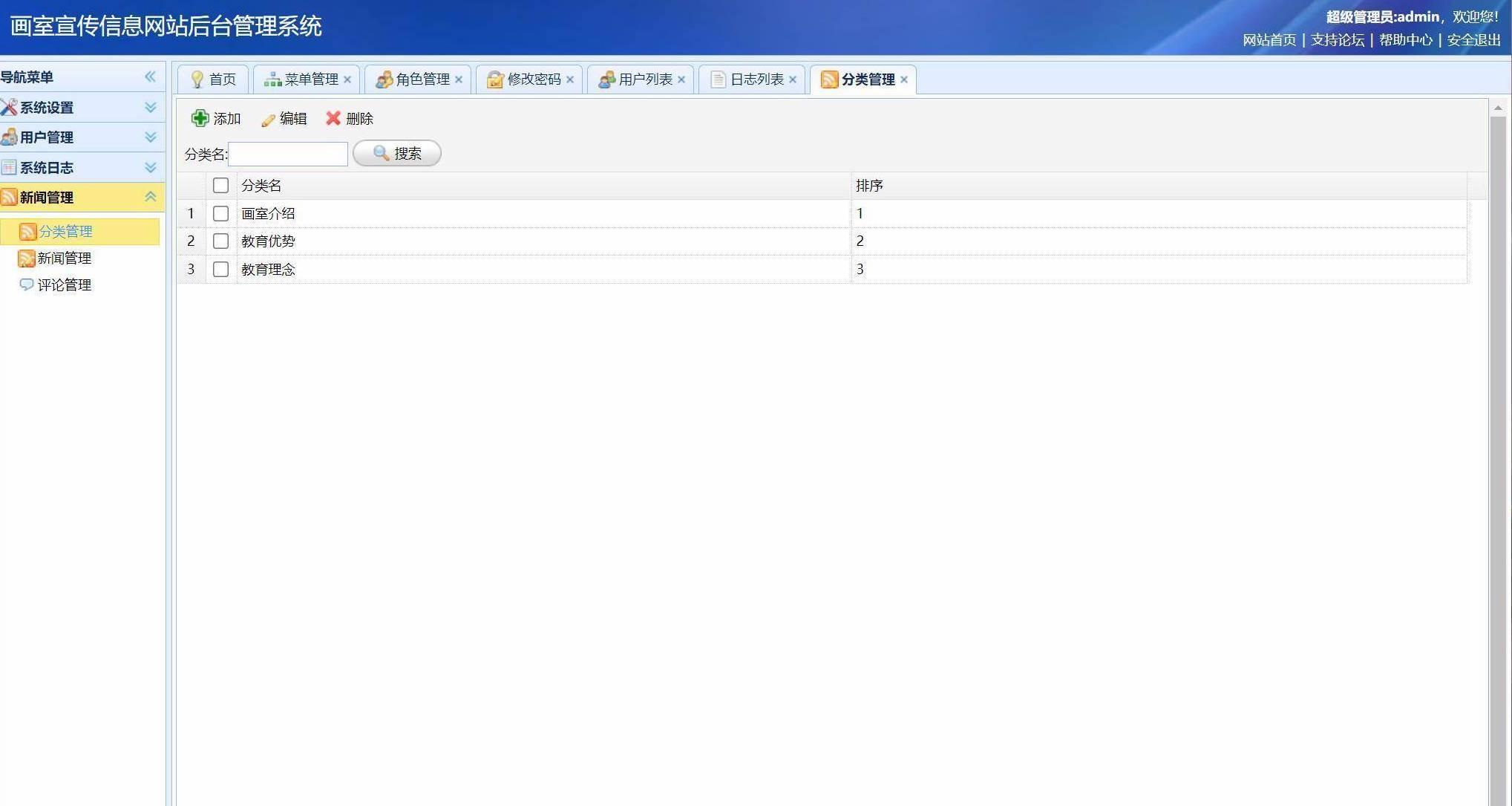 修改密码,新闻分类管理,新闻管理,日志管理,用户信息管理,管理员登录,菜单管理,角色管理,评论管理等功能。
