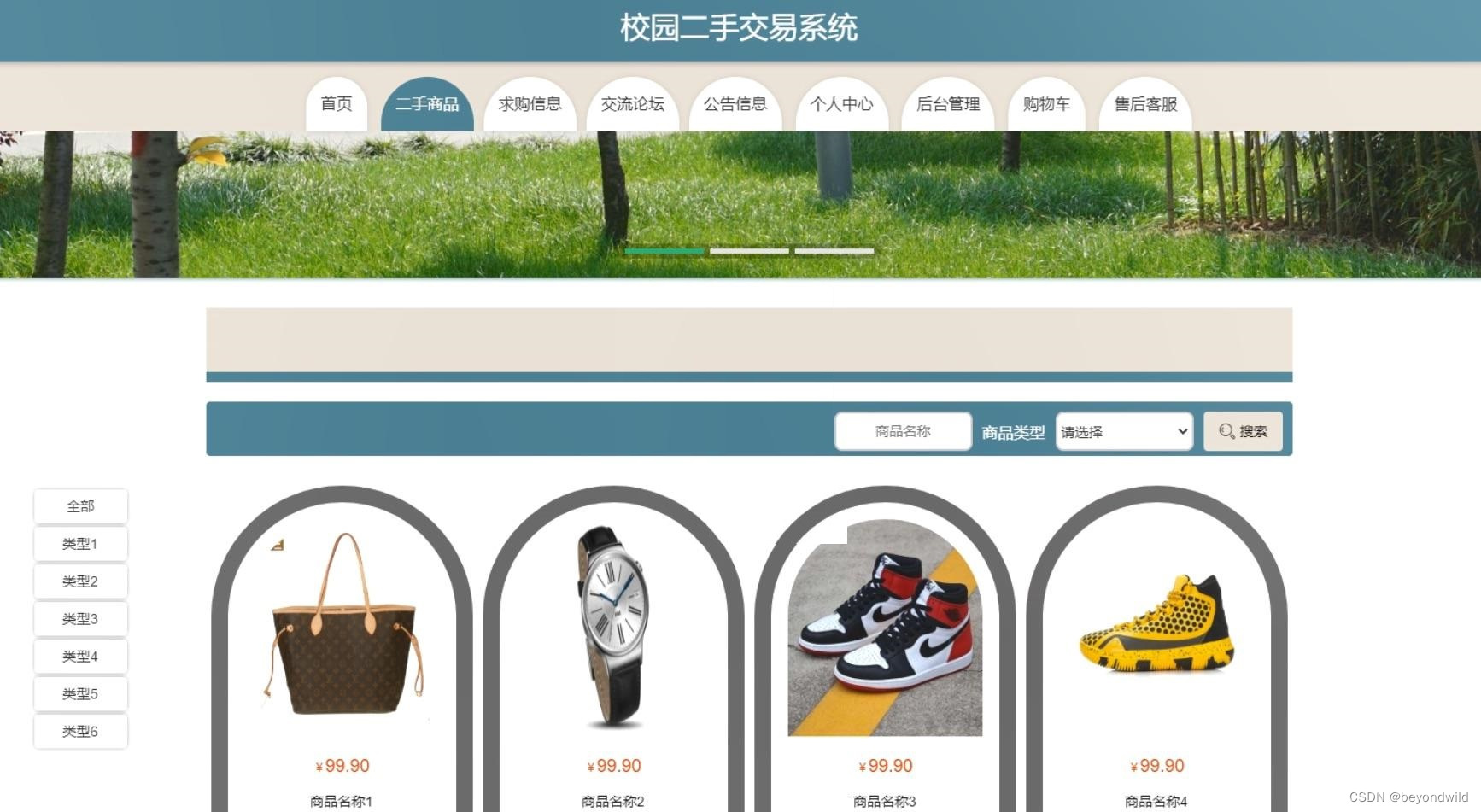 用户:首页、二手商品、求购信息、交流论坛、公告信息、个人中心、后台管理、购物车、售后客服