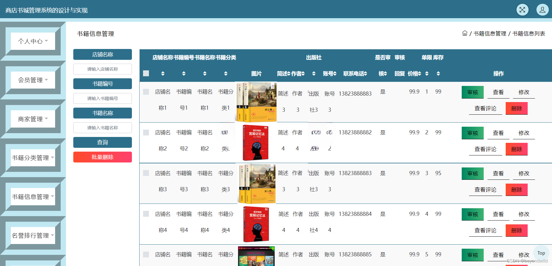 商品书籍管理:商家可以对书籍进行添加、查看、修改、删除等操作;