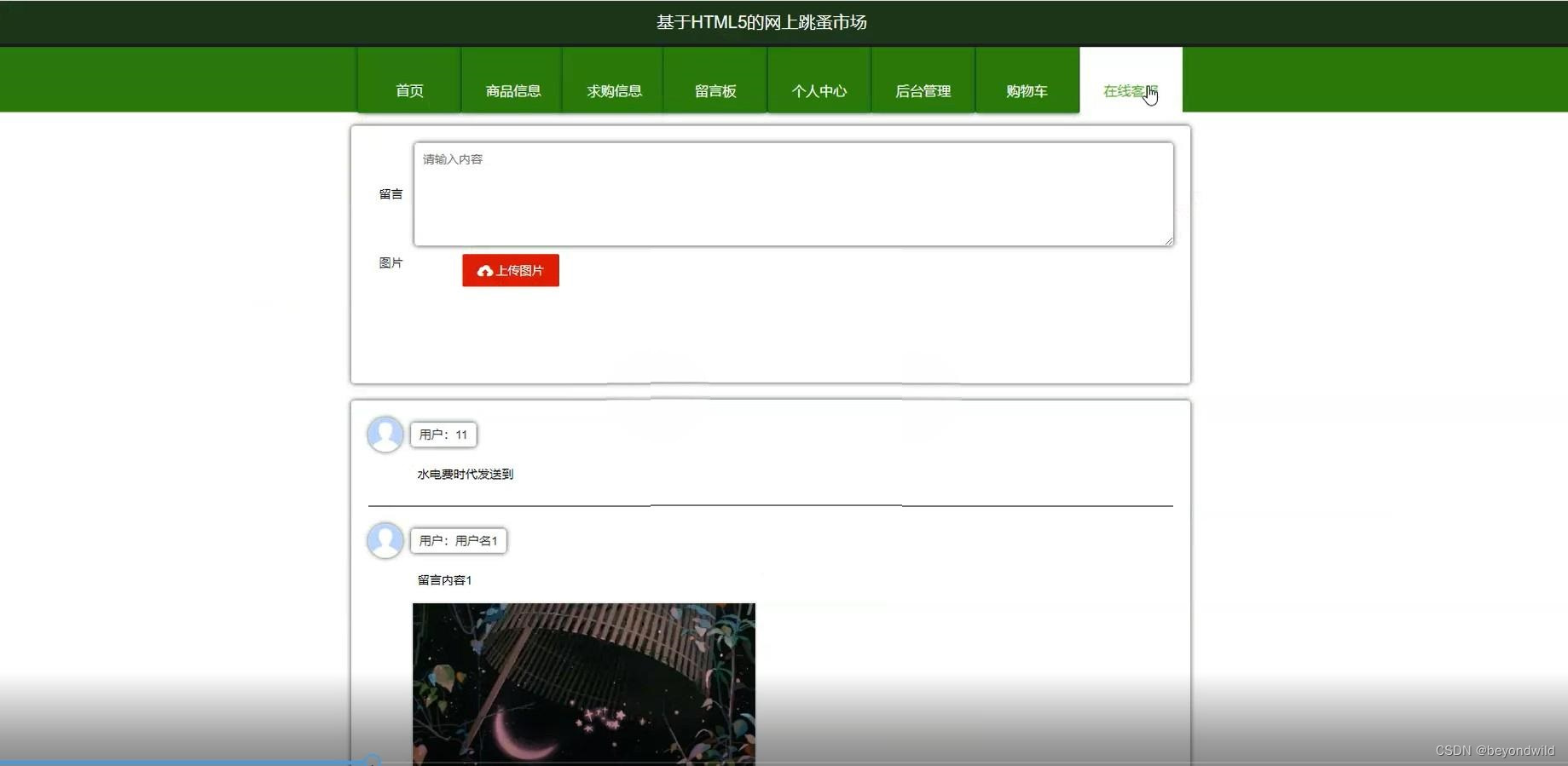 前台用户可以实现商品浏览在 ,系统首页可以查看首页,商品信息,求购信息,留言板,个人中心,后台管理,购物车,在线客服等