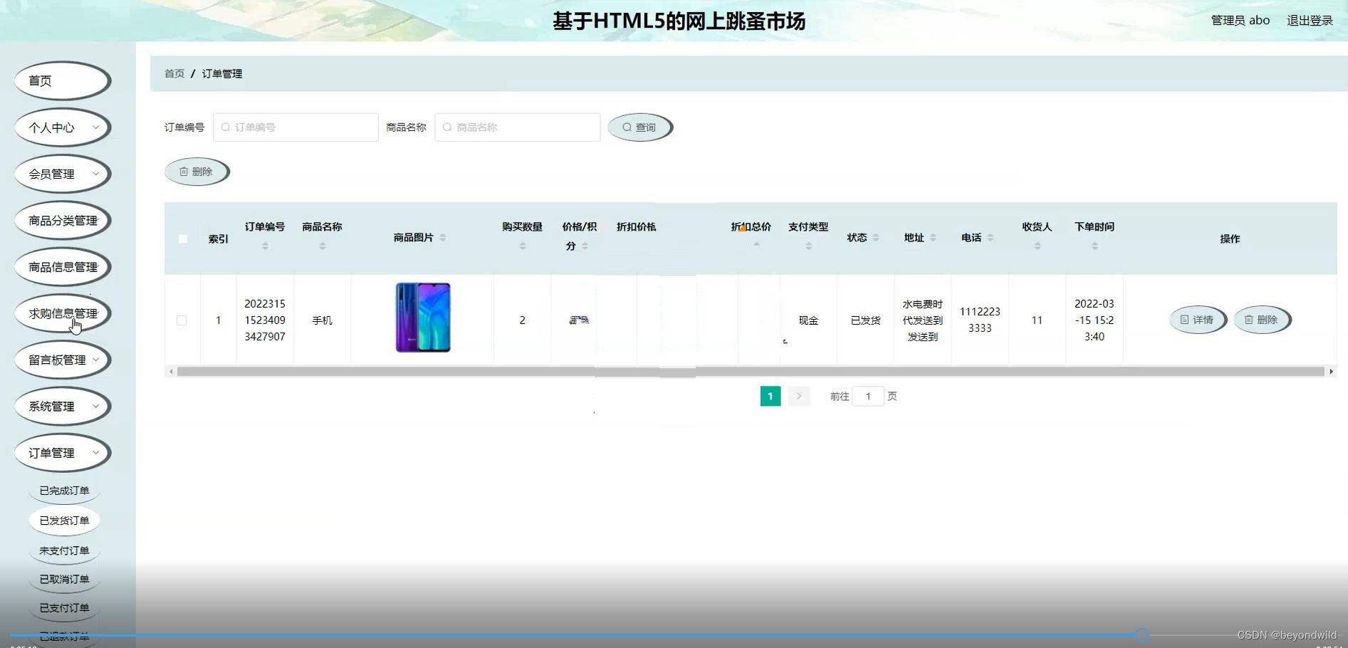 管理员登陆系统后,可以查看首页,个人中心,会员管理,商品分类管理,商品信息管理,求购信息管理,留言板管理,系统管理,订单管理等功能,还能对每个功能逐一进行相应操作