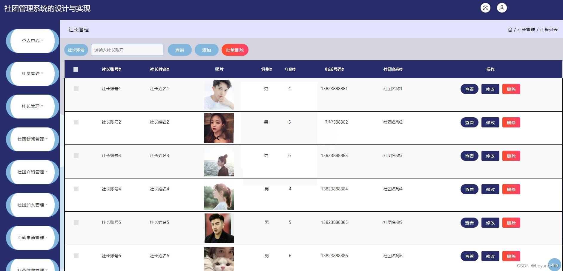 社长可以进行个人信息管理、社员管理、社团新闻管理、社团介绍管理、社团加入管理