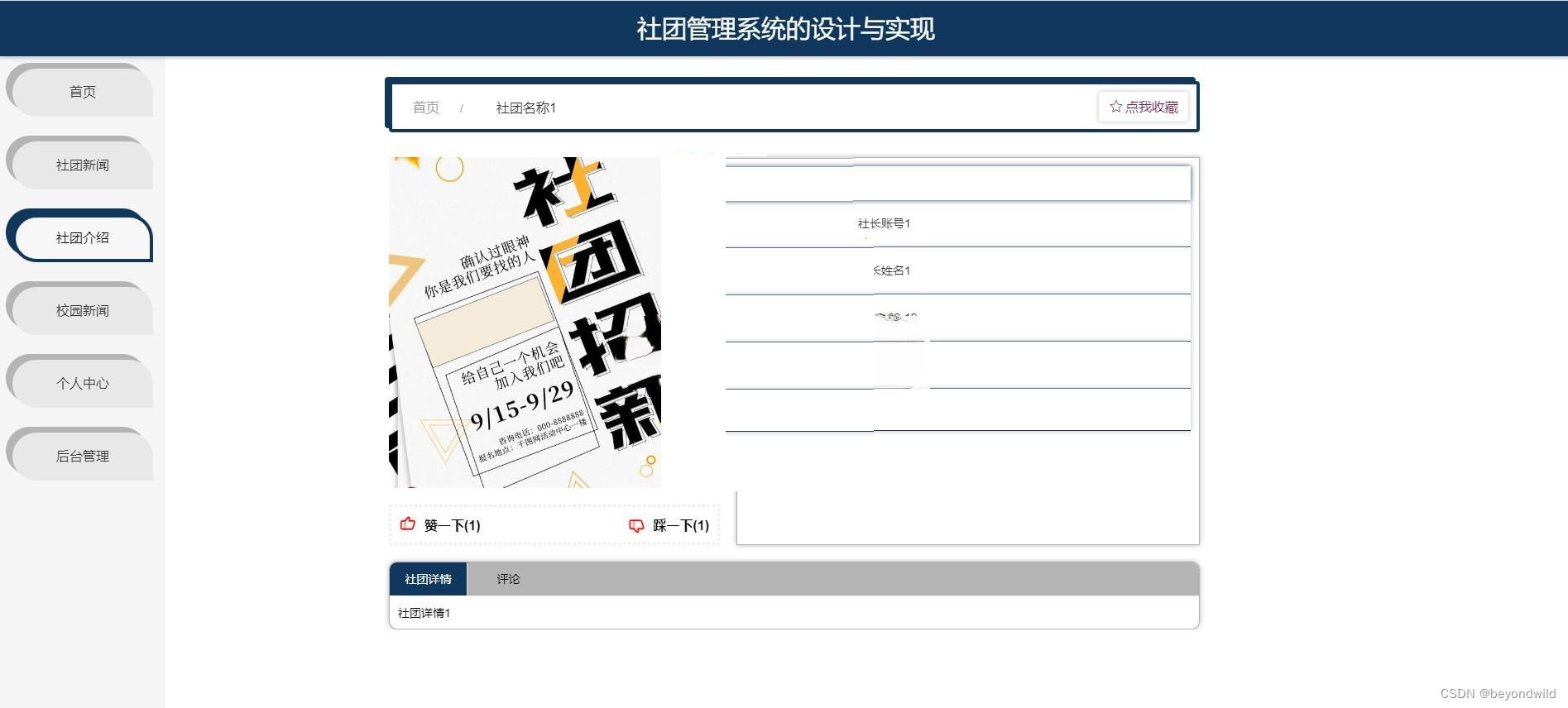 社员可以进行社员注册登录、查看社团新闻信息、社团信息介绍、校园新闻信息浏览、个人信息管理、收藏社团、申请加入社团、社团缴费等功能