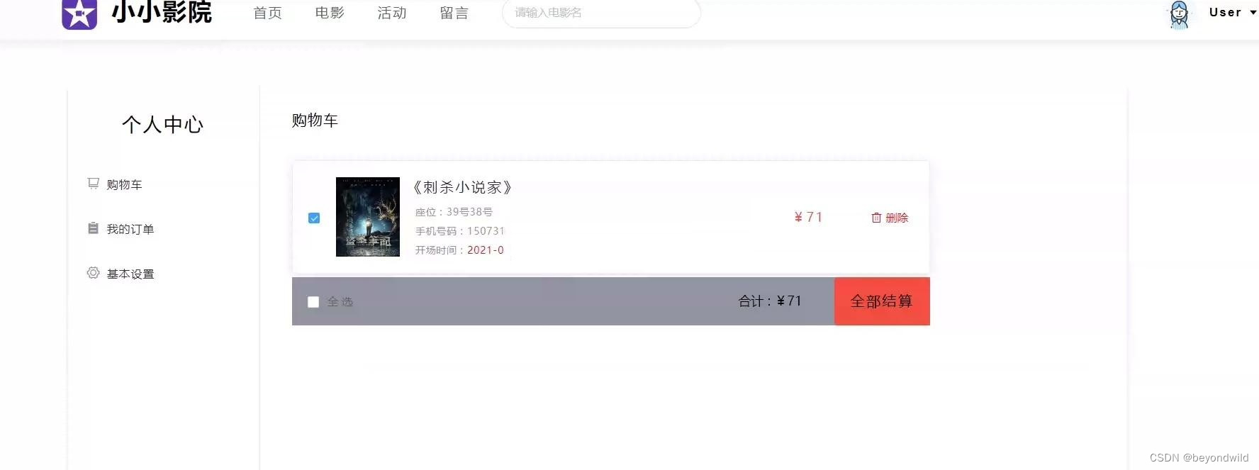 首页 登录 注册 图片轮播 正在热播列表 热门榜单Top10 电影分类 按类型 地区展示 搜索 活动 留言 评价客服 购买电影票 选座购买 评分 个人中心 基本设置 购物车 我的订单