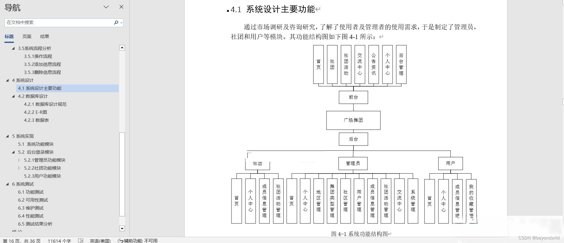 文档介绍(系统流程分析、操作流程、添加信息流程、删除信息流程、系统设计、系统设计主要功能、数据库设计、数据库设计规范、E-R图、数据表、系统实现、系统功能模块、管理员功能模块、社团功能模块、用户功能模块、系统测试、功能测试、可用性测试、维护测试、性能测试、测试结果分析):