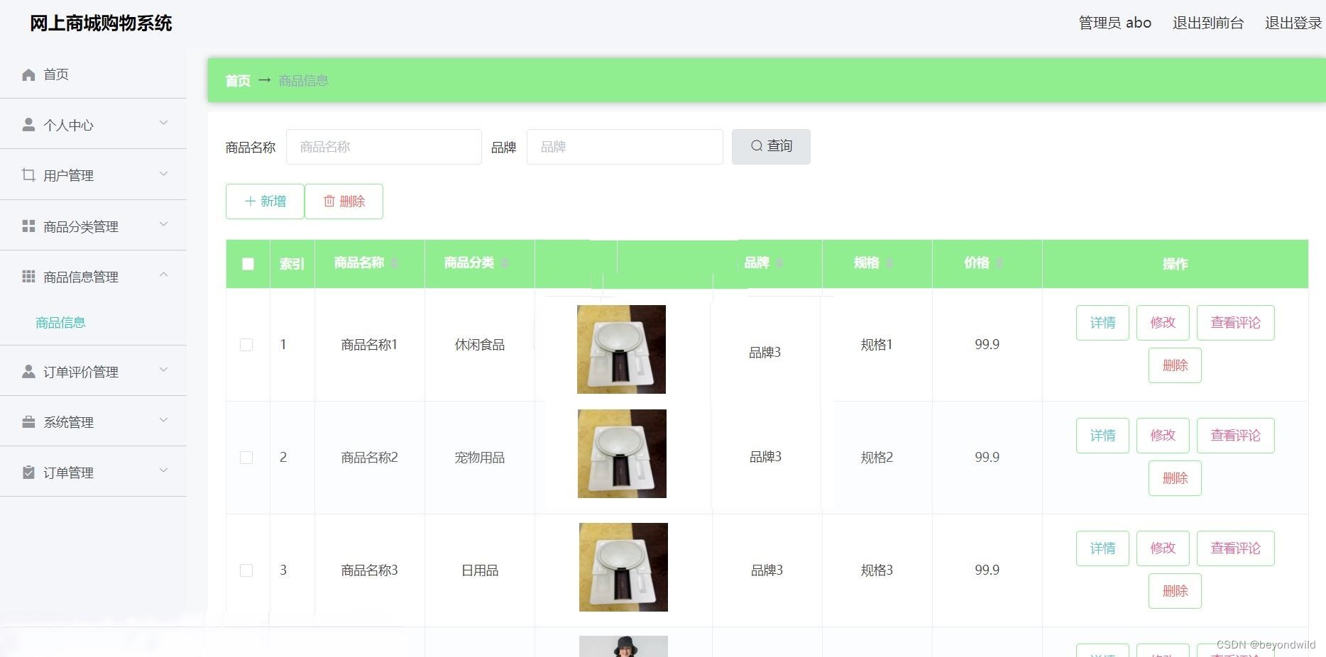 后台商品信息列表展示: