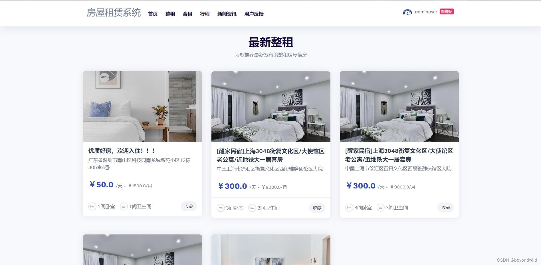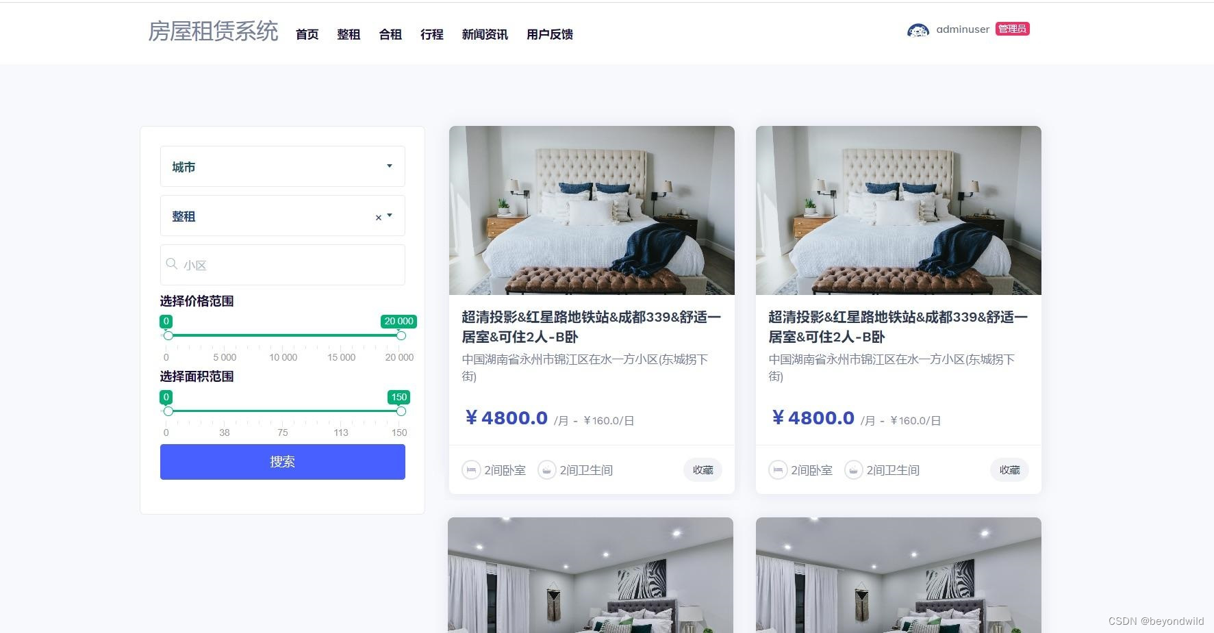 房屋租赁系统-首页展示: