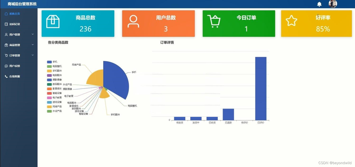整体功能包含用户登录注册,商品浏览,商品检索,添加商品,意见反馈,个人中心,地址管理,个人收藏管理,商品下单,订单管理,用户管理,统计图表,用户信息管理,地址管理,商品信息管理,商品分类管理,收藏商品管理,购物车管理,足迹管理,订单发货,退换货,订单处理等。