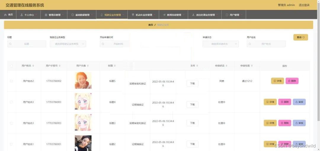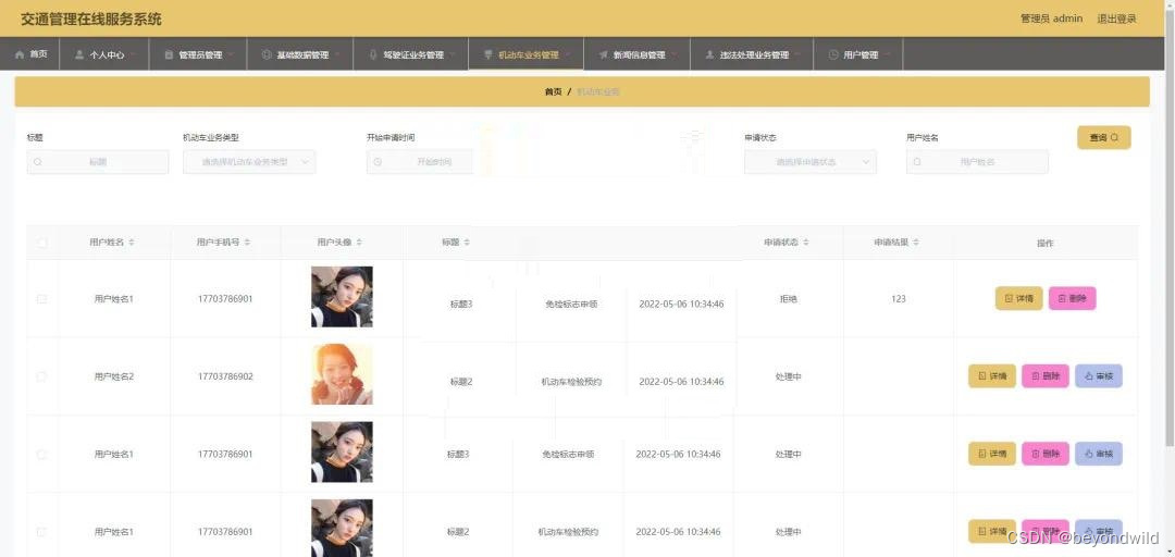 机动车业务管理:在线提交车辆注册、年检、转移、报废等业务申请,并获取办理结果。
