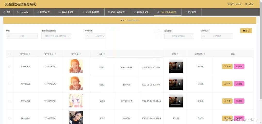 违法处理业务管理:在线查询违法记录,包括违章详情、罚款金额等;在线缴纳罚款、申请行政复议等。