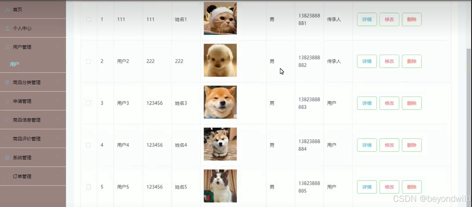 后台管理员主要功能:首页、个人中心、用户管理、商品分类管理、申请管理、商品信息管理、商品评价管理、系统管理、订单管理等。