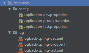 如下,resources文件夹下创建log文件夹,并创建三个文件,分别对应: