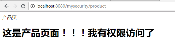 登陆成功后我们来访问product,这个用户是有权限的: http://localhost:8080/mysecurity/product