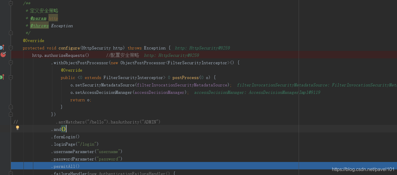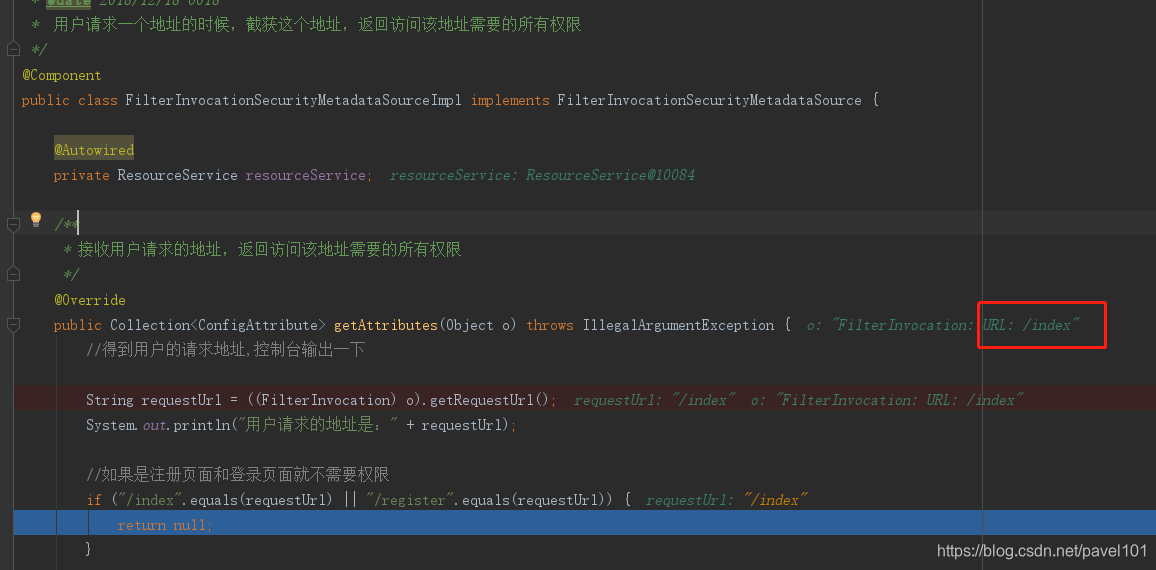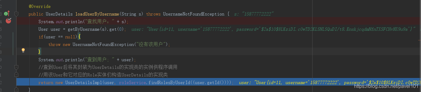 登陆时会先走到定义的UserService类的loadUserByUsername(String s)方法