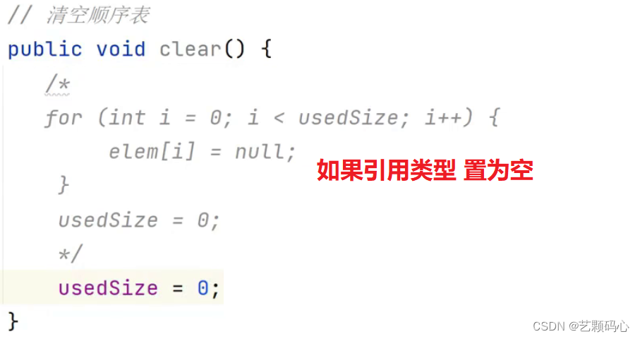 这里如果顺序表里面操作的是引用数据类型,那么就需要把它每个元素置为空.