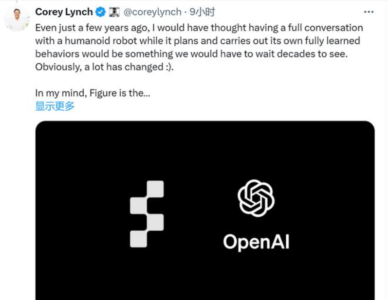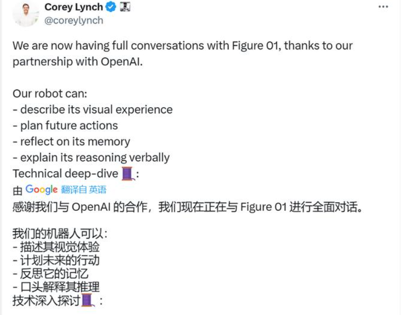Figure机器人操作高级AI工程师Corey Lynch介绍了此次Figure 01的技术原理。他表示,Figure 01现在可以做到以下这些: