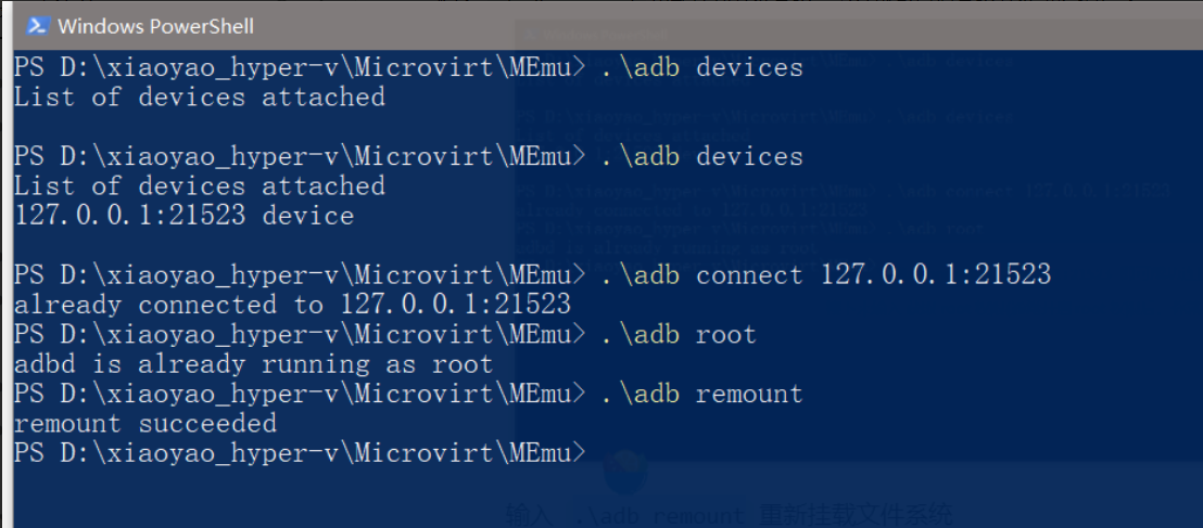 输入 .\adb connect 127.0.0.1:21523即可成功连接到安卓系统