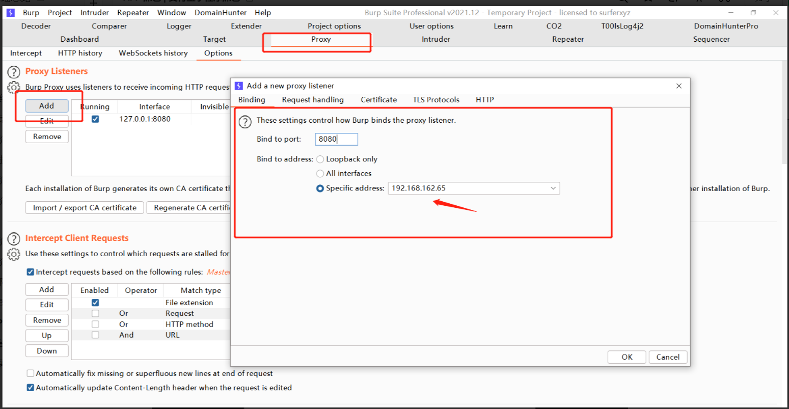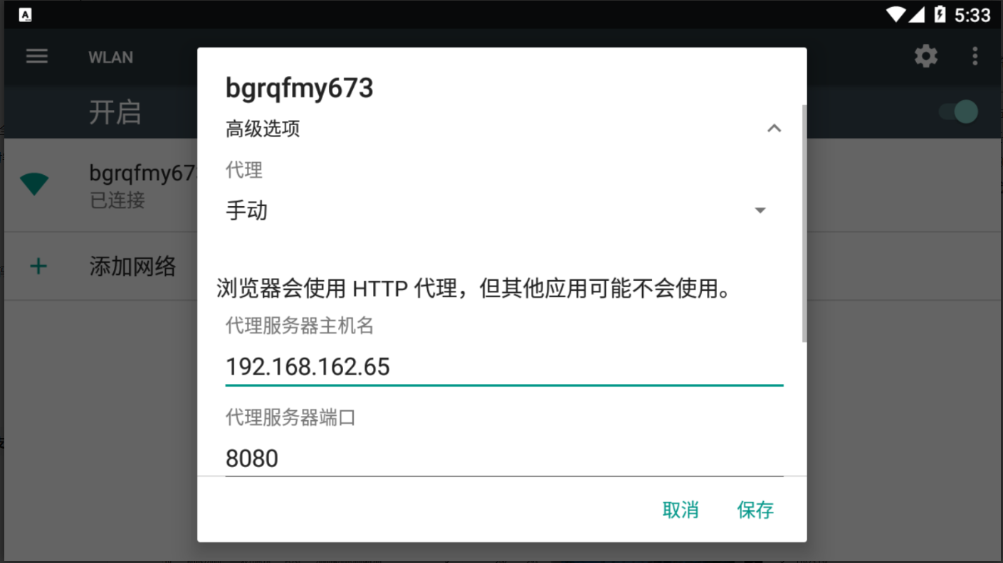 添加一个代理,这里需要确保使用和模拟器在同一个网段的 ip