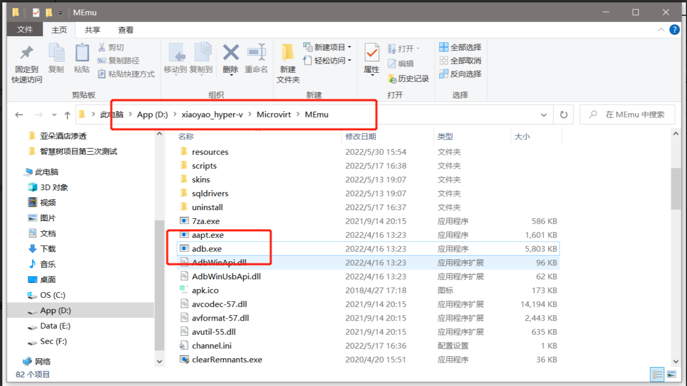 首先来到模拟器的安装目录,D:\xiaoyao_hyper-v\Microvirt\MEmu(依自己安装时位置而定,默认安装的为 D:\Program Files\Microvirt\MEmu)