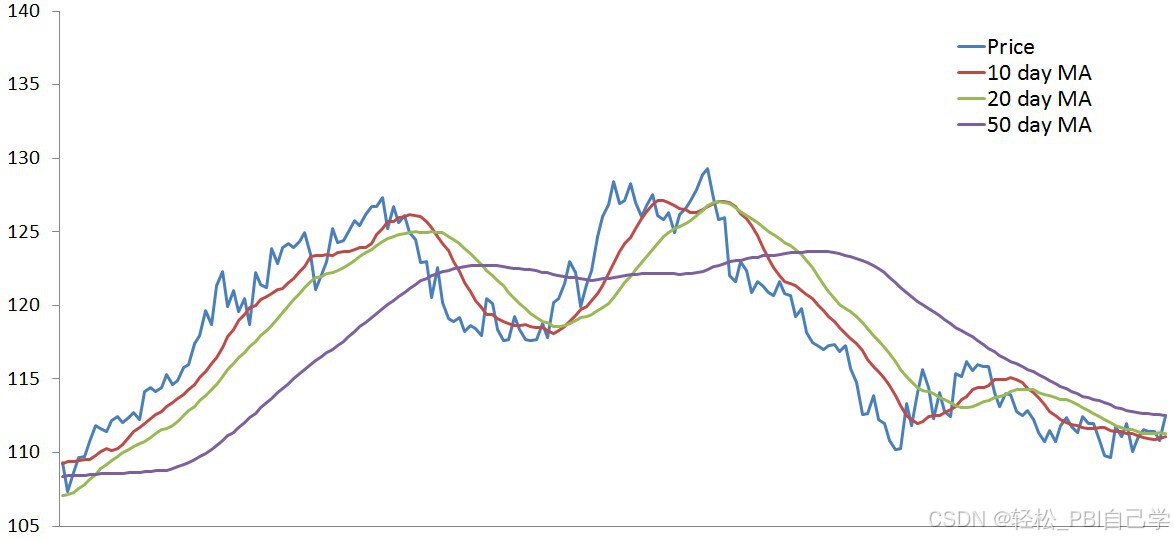 按照平均值的不同算法,移动平均可以分为简单移动平均、加权移动平均、指数移动平均等,最常见的是使用算数平均值计算的简单移动平均。
