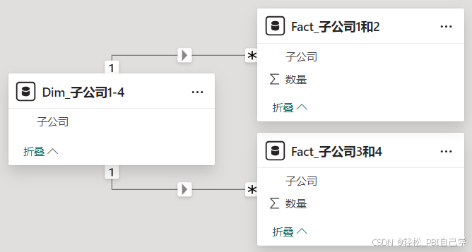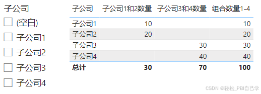 1 子公司1和子公司2的数据在一个表中,子公司3和子公司4的数据在另一个表中,且两个表都有子公司字段,建立关系然后加和。