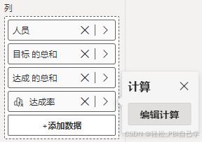 STEP 3 如需修改视觉对象计算的公式,选中视觉对象后,在字段窗格点击字段向右箭头-编辑计算,可再次回到公式编辑窗口。