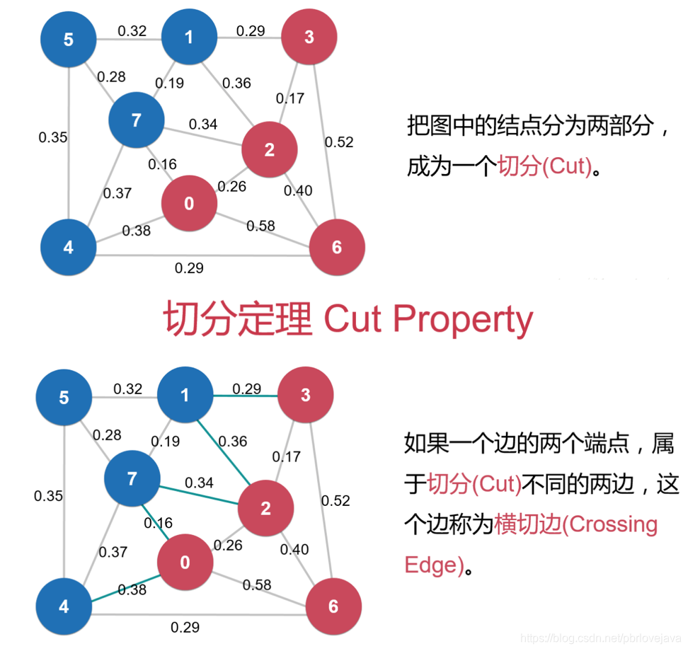 Lazy Prim算法懒惰的地方在于,minHeap中其实存储了很多不可能再构成横切边的边,但是在Lazy Prim算法中并不给予清除,而是使用了marked数组来判断其是否为横切边。