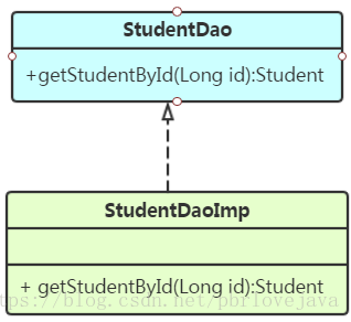 2、实现关系(implements):空心三角箭头的虚线表示,从类指向实现的接口。