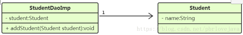 4、关联关系(该类引用了某类作为全局变量):类A指向被关联类B的带箭头实线表示,在关联的两端可以标注关联双方的角色和多重性标记。