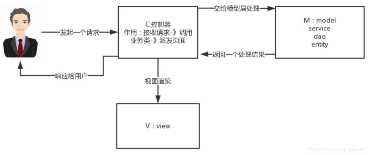 MVC模式是Web开发中最经典的一种业务处理模式,它的核心思想是将应用拆分成三个层,分别是Model层、View层和Controller层;当客户端发送请求时,通过Controller层接受并分发请求给Model层去处理,然后Model层将请求完成后发送给Controller层,Controller层再通过封装将请求响应给View层显示。这样做的好处是: