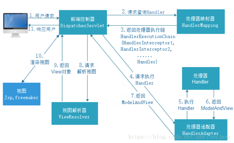 一、Spring MVC的执行流程简图: