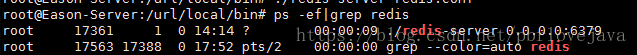 8、查看redis进程是否存在 root@Eason-Server:/url/local/bin# ps -ef|grep redis